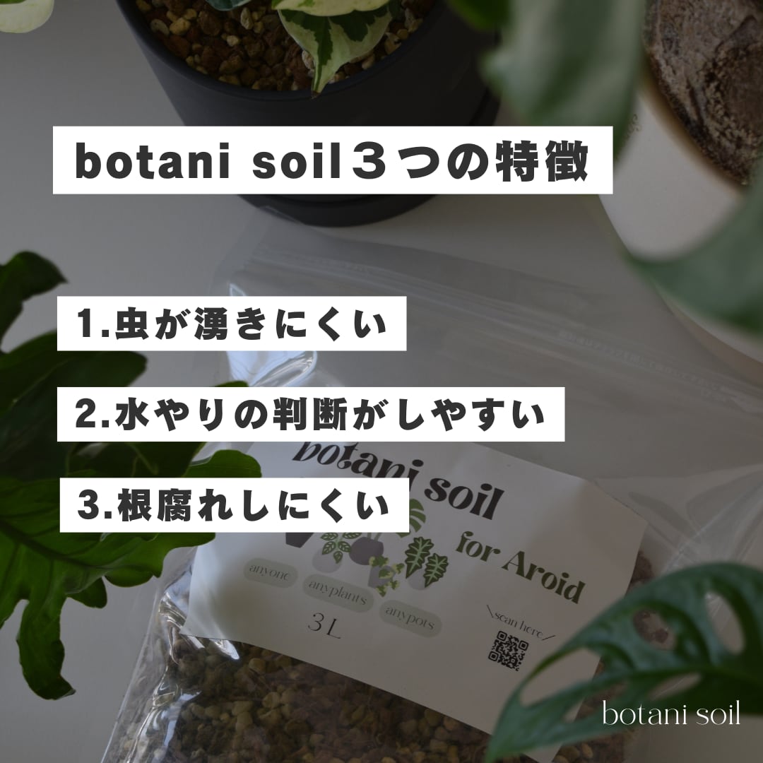 害虫は、腐葉土などの有機質の土から発生しやすいため、botani soilでは無機質の土で配合を行い、限りなく虫の発生を抑えてあります。