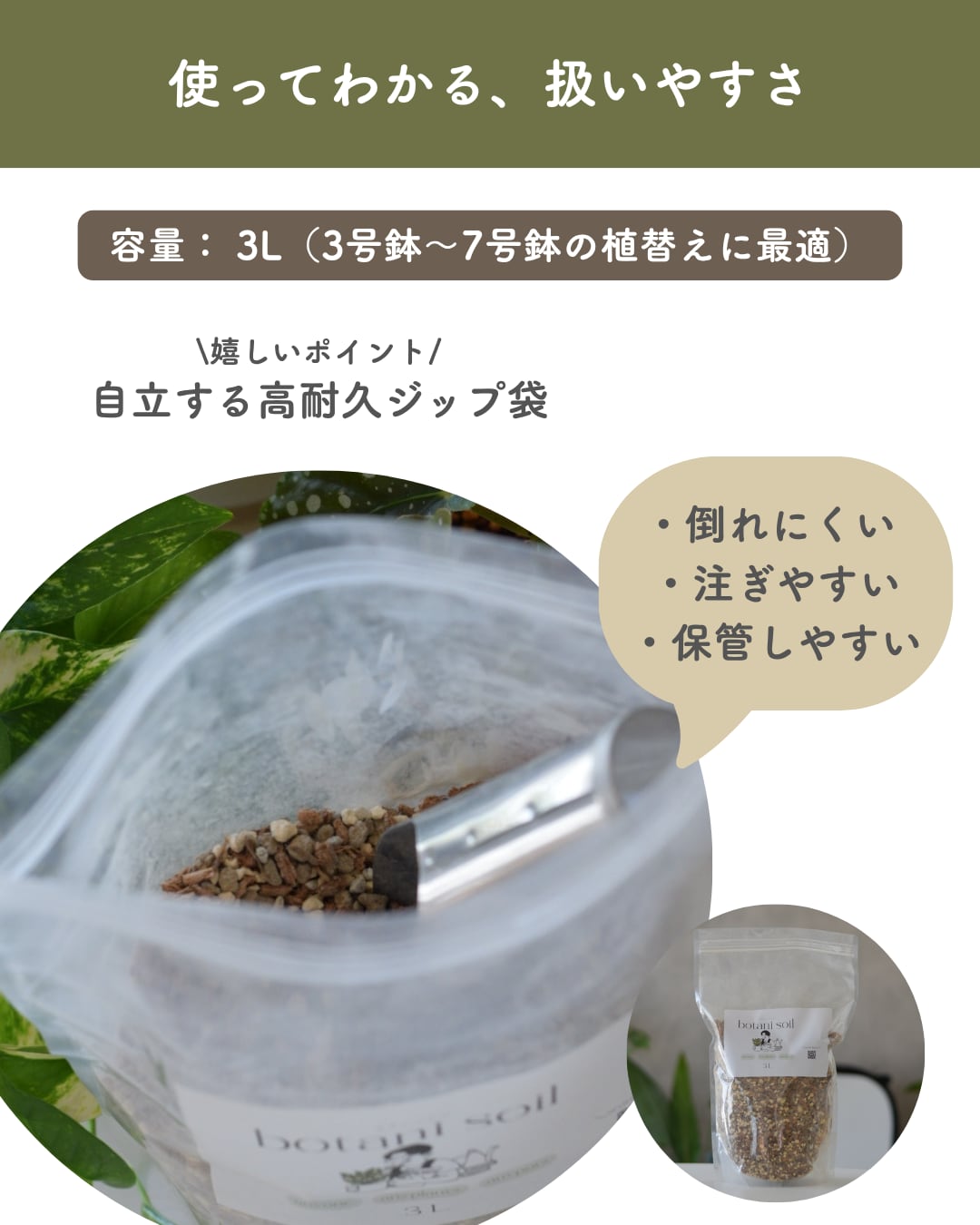 ※本商品一袋(3リットル)で3号鉢5~6個、4号鉢2~3個程度植替えができます。