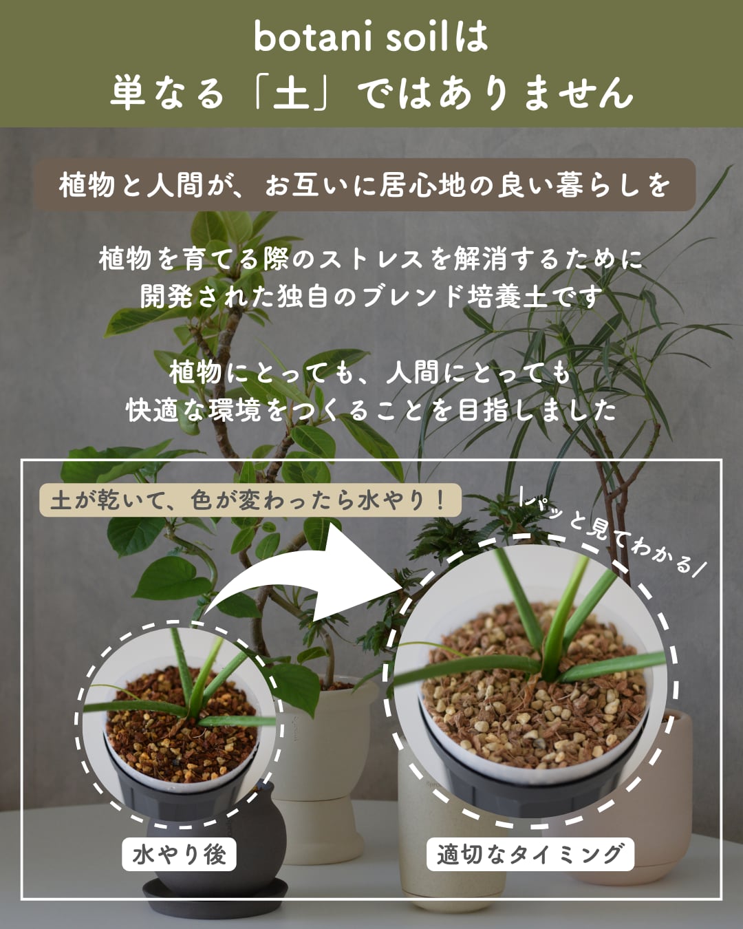 botani soilは、土が乾いた判断を行いやすく、水やりのタイミングに迷うことはありません。